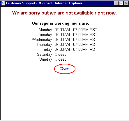 If you access the Chat Technical Support during our off hours, you will see the following page: