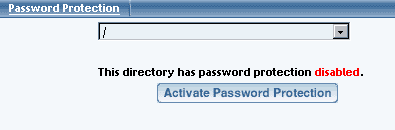 Select a directory to apply password protection to in the drop-down box at the top of the new window. When the directory has been selected, click on the button "Activate Password Protection".